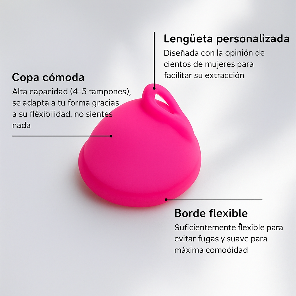 Ideal para menstruaciones abundantes: permite vaciarlo con más frecuencia sin esfuerzo adicional.